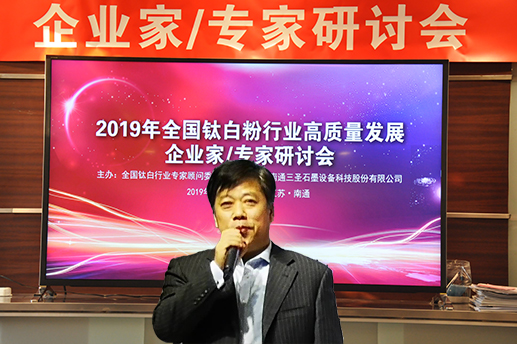 2019年3月29日至31日,2019年鈦白粉行業(yè)高質(zhì)量發(fā)展企業(yè)家/專家研討會在南通三圣石墨設(shè)備科技股份有限公司召開,全國鈦白粉行業(yè)來自四川、重慶、廣東、安徽、江蘇、浙江、甘肅等省、市的主要鈦白粉企業(yè)的董事長、總經(jīng)理或技術(shù)負(fù)責(zé)人、全國鈦白粉行業(yè)專家顧問委員會的專家、國家化工行業(yè)生產(chǎn)力促進(jìn)中心鈦白分中心主任、鈦白粉產(chǎn)業(yè)技術(shù)創(chuàng)新戰(zhàn)略聯(lián)盟理事長等近三十位企業(yè)家、專家、領(lǐng)導(dǎo)齊聚南通,聚焦鈦白粉行業(yè),共謀高質(zhì)量發(fā)展。