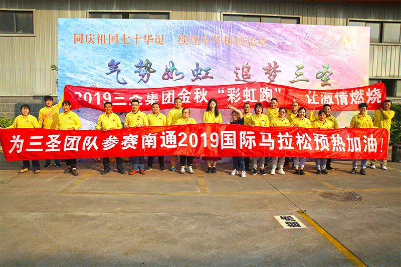 喜迎祖國七十華誕&預熱三圣團隊亮相南通國際馬拉松賽……三圣集團2019金秋“彩虹跑”絢麗呈現(xiàn)。
