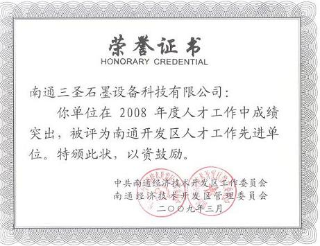 我公司被南通經濟技術開發(fā)區(qū)評為2008年度人才工作先進單位